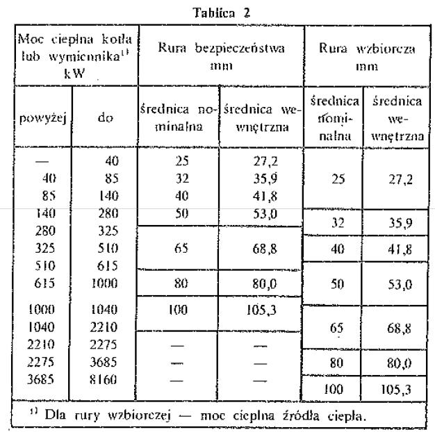 Tabela 2 Dobór średnicy rury bezpieczeństwa i wzbiorczej na podstawie mocy źródła ciepła