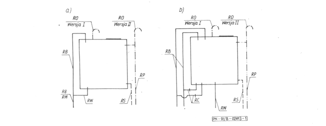 Układ połączeń rur zabezpieczających. RB powinna łączyć najwyżej położoną część