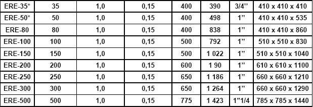 Vu – pojemność użytkowa naczynia, m3, Obliczona średnica nie może być mniejsza niż 20 mm