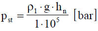 gdzie: p st – ciśnienie hydrostatyczne [bar], w instalacji ogrzewania wodnego na poziomie króćca przyłączonego do rury wzbiorczej do naczynia, gdy temperatura wody instalacyjnej wynosi t1 = 10 [°C]