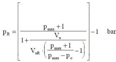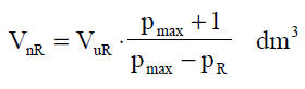pR – ciśnienie wstępne w przestrzeni gazowej naczynia wyznaczane ze wzoru:
