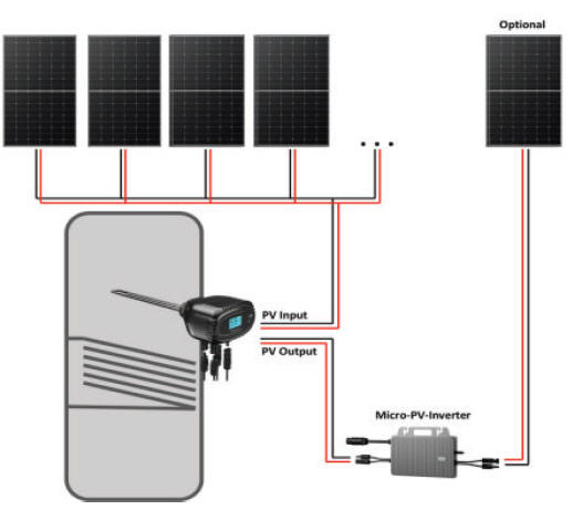 Obie grzałki posiadają płynną bezstopniową regulację mocy. Na tym jednak ich podobieństwo się kończy. Model 550 W ma bowiem tylko jedno wejście MC4 i może służyć wyłącznie do podgrzewania wody w zbiorniku. Po załadowaniu do maksymalnej temperatury grzałka po prostu się wyłączy i energia produkowana przez panele PV będzie tracona do momentu ponownego jej uruchomienia. Problem ten został wyeliminowany w nowszym modelu o większej mocy ROD-1000. Grzała solarna ROD-1000 posiada dwa przyłącza MC4, wejściowe i wyjściowe. Pozwala to stosować co najmniej dwa różne warianty pracy w systemie: