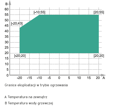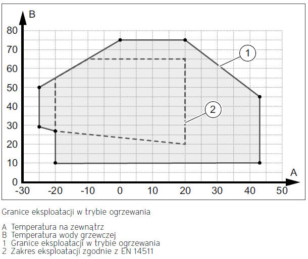Rys. Wykres pracy dla pompy aroTHERM 5/5 AS w trybie ogrzewania