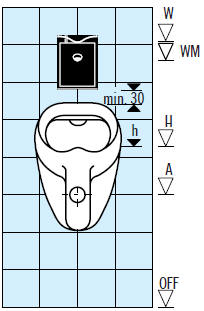 gdzie: A – wysokość odpływu z pisuaru, H – wysokość „dziobu” pisuaru, WM – wysokość podejścia wodociągowego