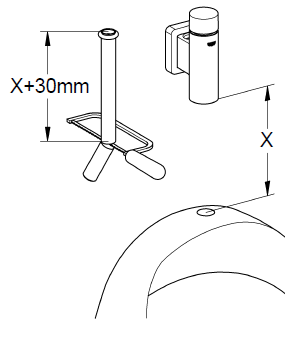 W odróżnieniu do poprzednich konstrukcji firma wymaga aby rura pionowa była dłuższa o 30mm od długości X.