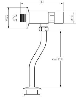 To górna półka wśród tego typu konstrukcji o pięknej linii. zawór przeznaczony jest do pracy w instalacjach wody zimnej o ciśnieniu od 0,5-5 bar. Posiada możliwość regulacji wielkości spłukiwania w zakresie od 1-4 litrów wody. Przy zakupie w sieci należy zwrócić uwagę na jego różne odmiany. Zawory do pisuarów mają średnicę dopływową 1/2″ dla muszli ustępowych 3/4″. W UE zawory zawór powyższy może mieć też różne długości rurek. Np. w Belgii rura pionowa ma 300mm długości z uwagi na inne przepisy
