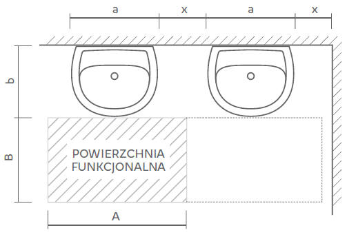 Rys. Przestrzeń montażowa dla przyborów sanitarnych (rys. KOŁO)