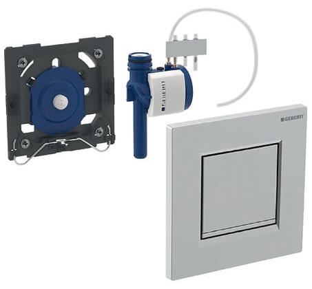 Dotychczasowe konstrukcje zaworów miały zastosowanie dla pisuarów montowanych bezpośrednio na ścianie murowanej. lub na stelażach bez puszki przyłączeniowej. W takich rozwiązaniach cała armatura musi być zamocowana nad tynkiem. Przy stelażach z puszką korpus zaworu może być skryty w ścianie, na zewnątrz pozostaje tylko tzw. płytka, lub przycisk sterujący. Sprężanie powietrza odbywa się wtedy pośrednio, poprzez wężyk zamocowany między przyciskiem a korpusem zaworu. Poniżej przykładowe rozwiązanie stosowane w firmie GEBERIT.