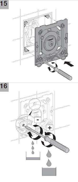 Na rys. 16 pokazano możliwość dodatkowego dławienia przepływu. Dokręcenie śruby powoduje zmniejszenie przepływu (nawet poniżej 1 litra), odkręcenie – zwiększenie przepływu. Ostatnią czynnością jest założenie płytki spustowej i jej blokada kluczem imbusowym.