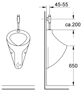 starszych dzieci od 7-11 lat zaleca 50cm, 12-15 lat 57cm. Poniżej podaję też zalecane przez firmę wielkości przestrzeni montażowej. Zgodnie DIN 18030 E, w obiektach ogólnodostępnych (dla osób w różnym wieku) należy przewidzieć co najmniej 1 pisuar o wysokości montażowej 48 cm.