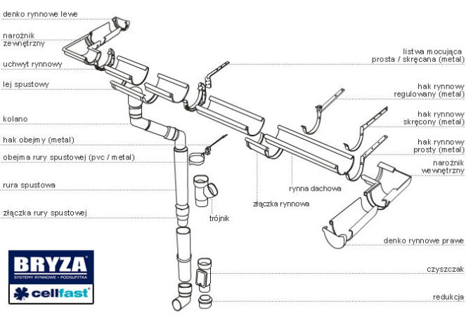 Podstawowymi elementami systemów odwodnienia dachu, oprócz rynien, są: